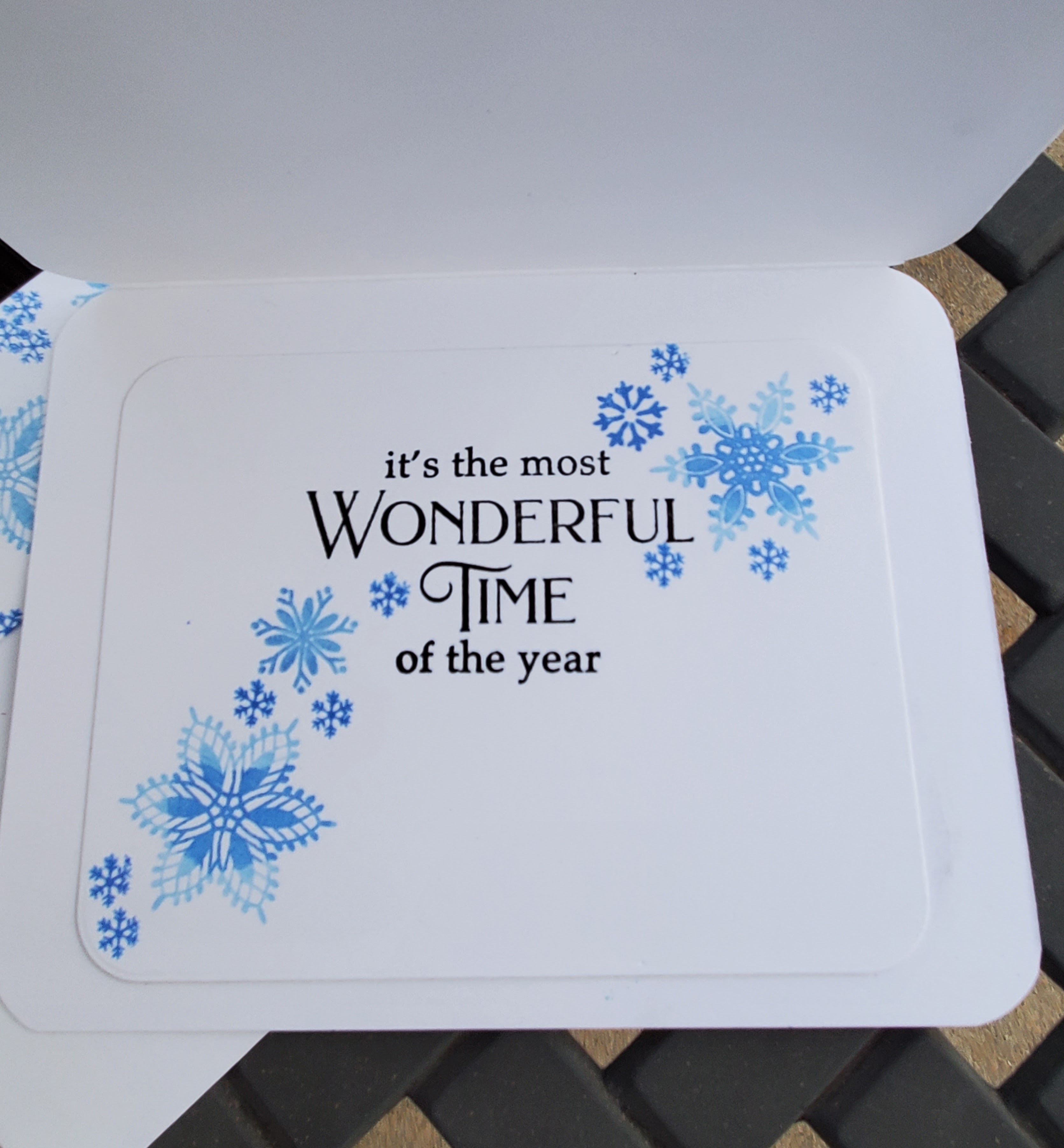 A late holiday card... which I never blogged! This is Penny Black's "Caroling Trio" which I have done before and love. The "merry" die is from SSS and snowflake embossing folder is from Sizzix. A couple of die cut snowflake to finish it off from my stash. This is for the Penny Black Saturday Challenge, "Winter Wonderland" and Simon Says Stamp Monday Challenge "Celebration."The inside sentiment is from Poppy Stamps and the snowflakes are from both MFT and Hero Arts.